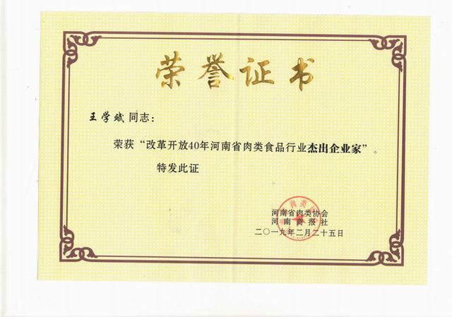 榮譽(yù)‖洛陽(yáng)正大獲評(píng)改革開放40年河南肉類食品行業(yè)強(qiáng)勢(shì)企業(yè)、王學(xué)斌***總裁榮獲改革開放40年河南肉類食品行業(yè)杰出企業(yè)家