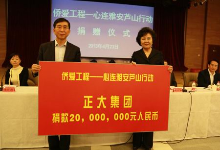 正大為雅安災(zāi)區(qū)捐款2000萬元
