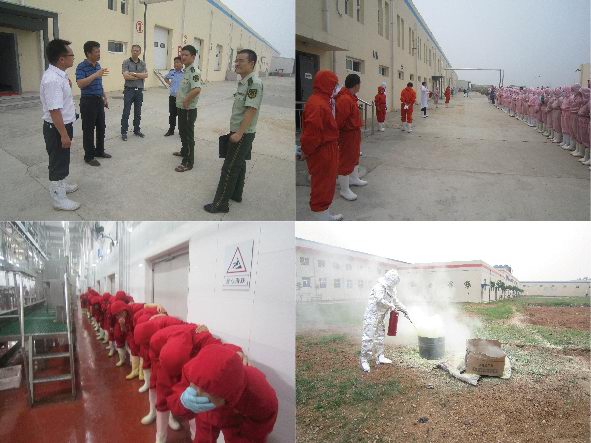 吉林德惠寶源豐禽業(yè)發(fā)生特大事故,造成120人遇難,在全國(guó)安全月伊始之時(shí)發(fā)生如此重大事故,教訓(xùn)慘痛。為吸取這一慘痛的經(jīng)驗(yàn)教訓(xùn),落實(shí)于董事長(zhǎng)關(guān)于安全整頓的要求,進(jìn)一步增強(qiáng)員工安全意識(shí)和自我救助能力,公司于2013年6月7日在各分廠車(chē)間、制冷機(jī)房和廠區(qū)空地三處演習(xí)地點(diǎn)舉行了緊急疏散、液氨泄漏緊急處置和消防滅火的實(shí)戰(zhàn)演練。