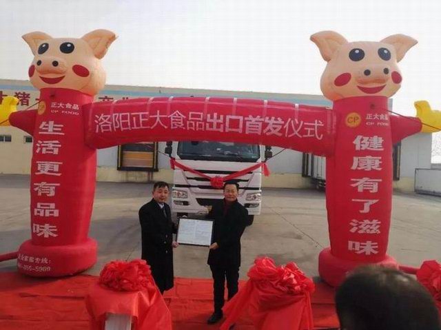 洛陽正大食品出口香港的首車肉制品,