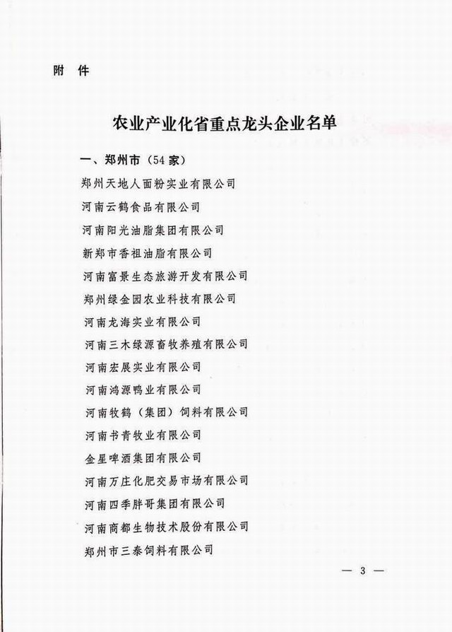 農(nóng)業(yè)產(chǎn)業(yè)化省重點(diǎn)龍頭企業(yè)2016.10.24 發(fā)布時(shí)間:2020-01-15來源:洛陽正大食品有限公司點(diǎn)擊:10967