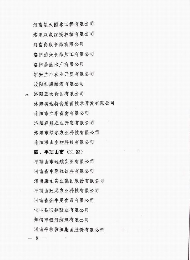 農(nóng)業(yè)產(chǎn)業(yè)化省重點(diǎn)龍頭企業(yè)2016.10.24 發(fā)布時(shí)間:2020-01-15來源:洛陽正大食品有限公司點(diǎn)擊:10967 上一篇:HACCP體系認(rèn)證證書 下一篇:56.河南民營企業(yè)現(xiàn)代農(nóng)業(yè)100強(qiáng)